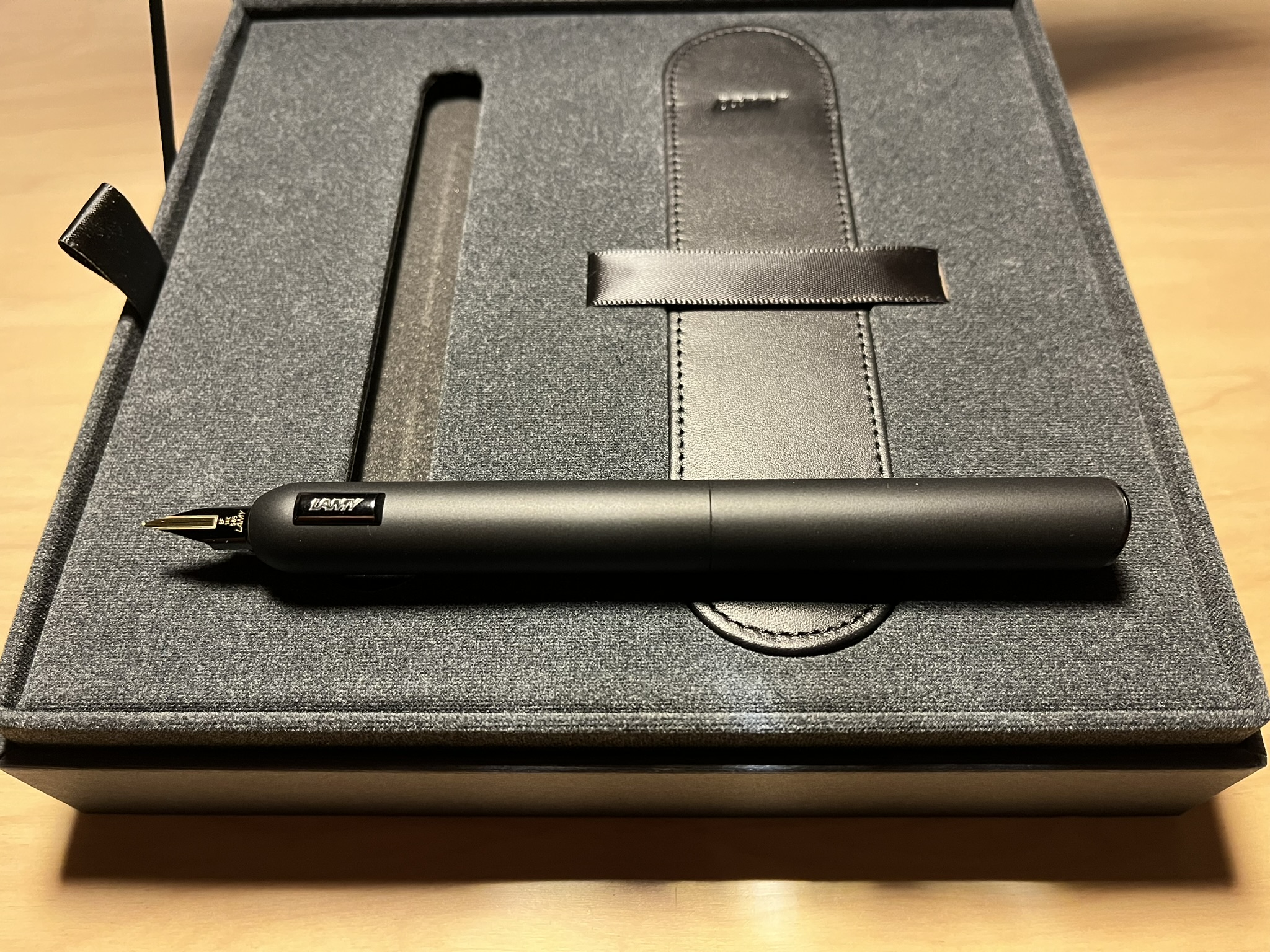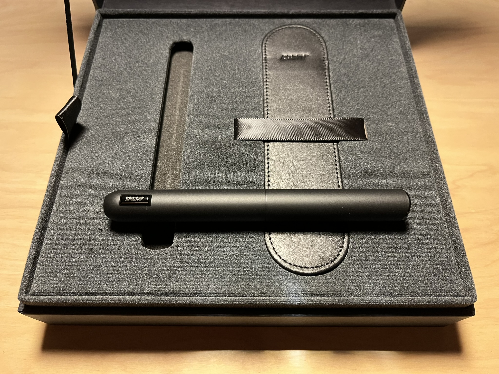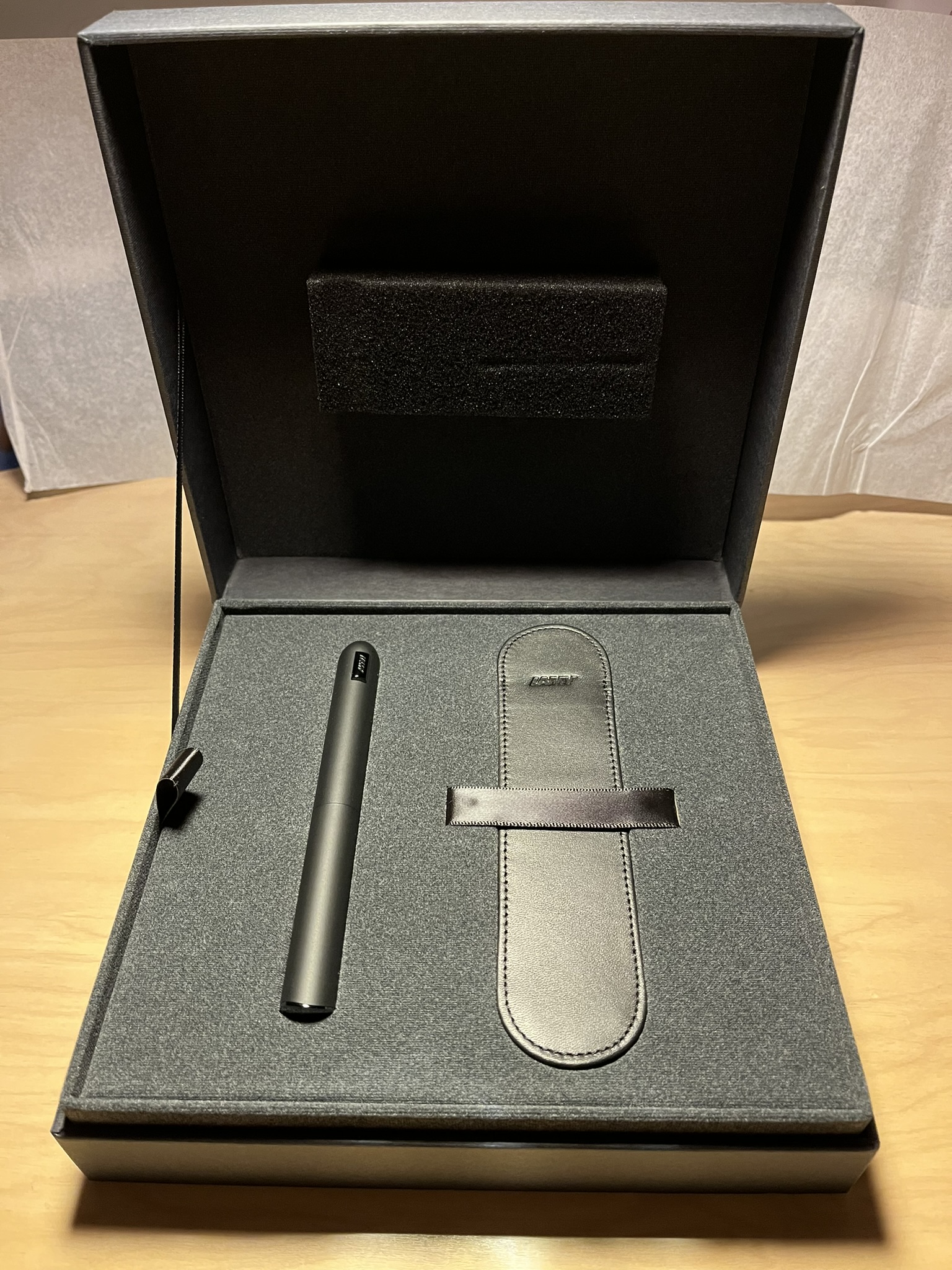 역시 Lamy사의 최고급 필기구 라인이라 그런지 공산품(...)의 느낌이 나던 다른 만년필들과는 달리 허영심을 자극(...)하는 느낌의 포장 상자가 도착했다.